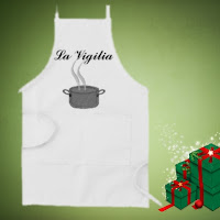 I shared with my sisters that we had sold 2 Feast of the Seven Fishes custom embroidered Christmas Eve aprons. Of course they wanted to know which apron style the buyer had chosen. Pretty soon the conversation turned to the many La Vigilia (Christmas Eve) dinners our family has had over the years. We reminisced about how our mother would never ever start the water for the macaroni (capellini) till all family members were present. And how we would roll our eyes when she declared the pot is on. Which meant start rounding everybody up and getting the grandkids seated around the dinning room table.